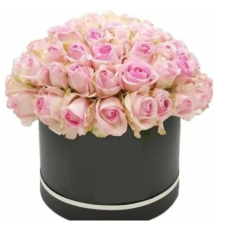 Букет состоит из 51 розовая роза, коробка.